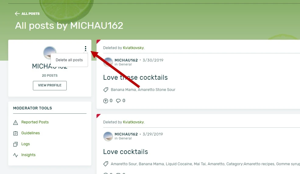 The 'Delete All' option available to moderators and admins