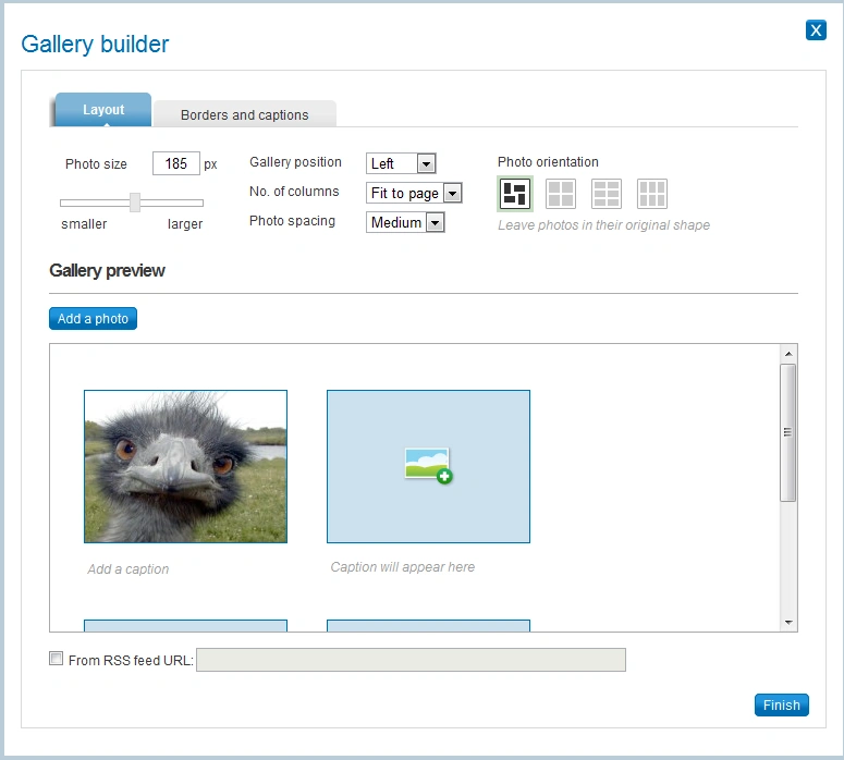 • Set the captions, titles, or descriptions of your selected photos. This information will display below them and will help your readers know what they're about.
