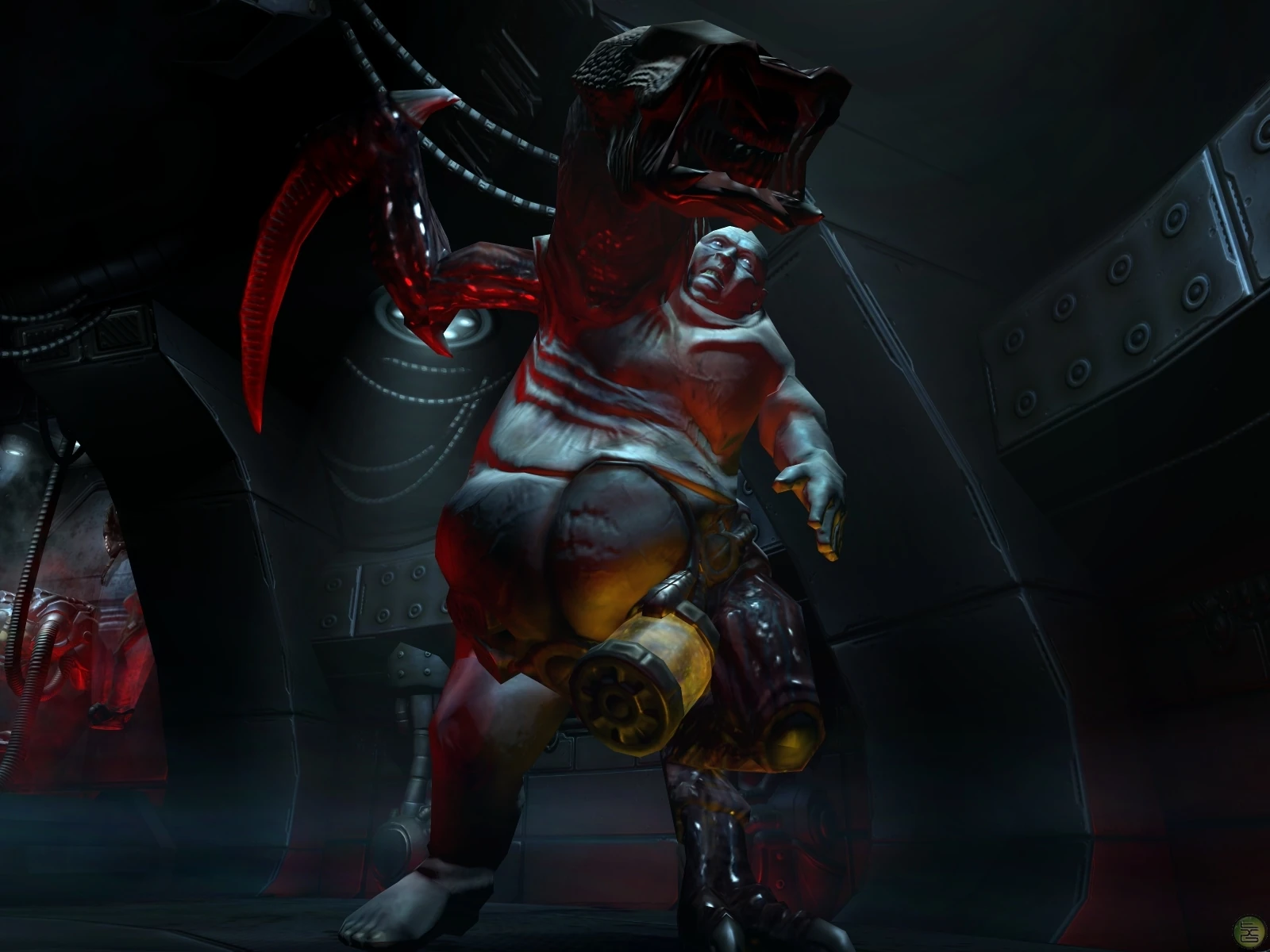 Born of the melding of the DNA of human and alien victims of the living Sphere. The Mutate is a surprisingly nimble opponent despite its bulky frame, and possesses a massive claw that it uses to impale its enemies in a spinning attack. But they have poor lateral agility so it is very easy to dodge them when they charge.