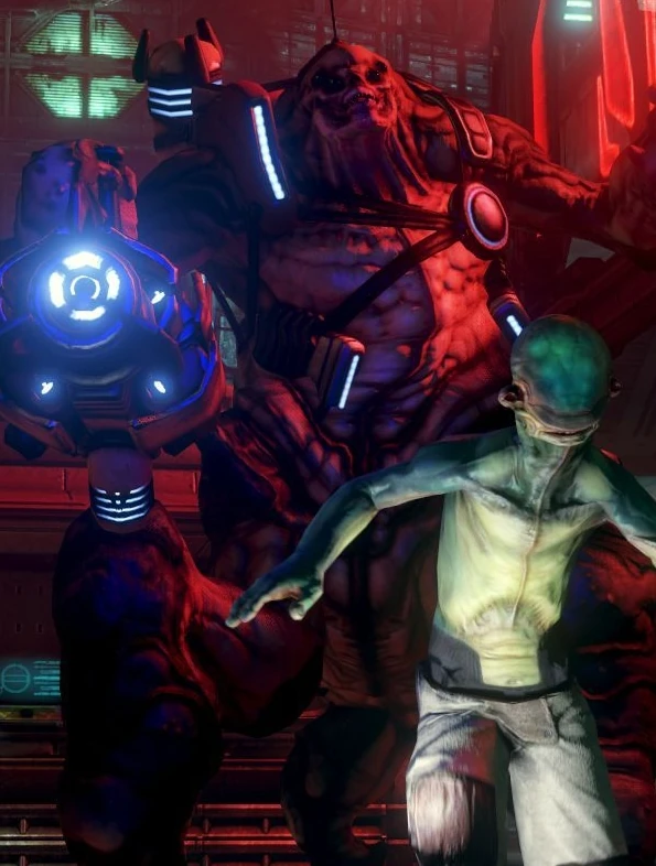 Well, prey has undergone a radical shift in structure. It is no longer a universe formatted like doom, resistence, or red faction. No longer does a single enemy sit upon a pedestle of wrong, and a single force stand for good. Normally a reformmatting like this would hurt the universe (ask red faction about when it added aliens) . . . . but . . . In prey, stated that other races and worlds existed out there. There was enough little things to indicate that this type of system could exist, and now it looks completely awesome.